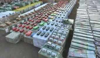 وعقب تقنين الإجراءات تنسيقاً والجهات المعنية، أمكن ضبطهما، وأسفرت أعمال تفتيش الحاويتين عن ضبط (أكثر من 186 ألف قطعة ألعاب نارية مختلفة الأحجام – 1400 جهاز إتصال لاسلكي – 4800 بطارية أجهزة إتصال – قرابة 2 مليون قرص لعقاقير طبية – 2800 قطعة غيار سيارات – 9000 قطعة إسبراي منشط – 2400 جهاز صاعق كهربائي – 850 كاميرا لاسلكية صغيرة – أكثرمن 121 ألف قطعة مستلزمات تجميل).