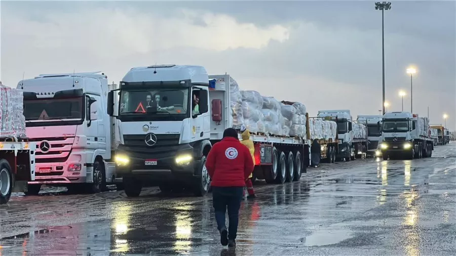 أطلق الهلال الأحمر المصري، صباح اليوم الباكر، وسط وسط موجة شديدة من الأمطار متطوعي الهلال الأحمر المصري، قافلة «زاد العزة .. من مصر إلى غزة» رقم 103، حاملة عدد من شاحنات المساعدات الإنسانية العاجلة في اتجاه قطاع غزة، وذلك في إطار جهوده المتواصلة كآلية وطنية لتنسيق المساعدات إلى غزة.