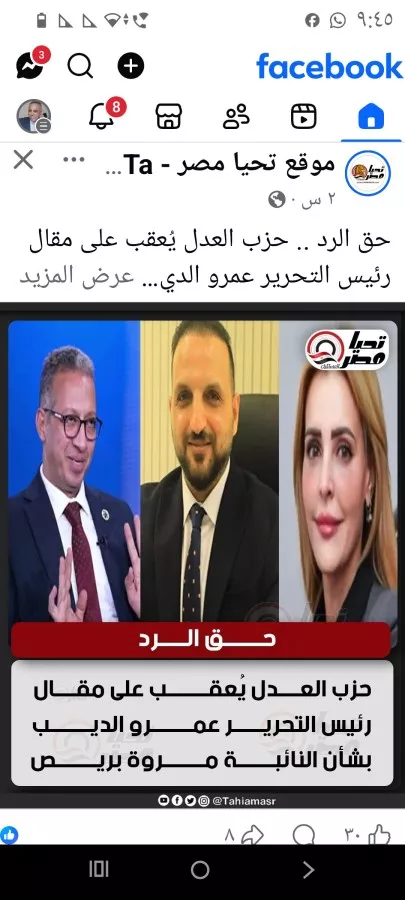قدمت النائبة مروة بوريص عضو مجلس النواب مذكرة رسمية بحق الرد والتصحيح إلى رئيس تحرير موقع “تحيا مصر”، ردا على ما نُشر بالموقع بتاريخ 26 يناير 2026 تحت عنوان: “هل يعلم رئيس حزب العدل بوجود تضارب مصالح داخل حزبه؟ وهل سيصمت البرلمان؟”، والذي تضمن – بحسب المذكرة – ادعاءات غير دقيقة بشأن وجود شبهة تعارض مصالح تتعلق بها.