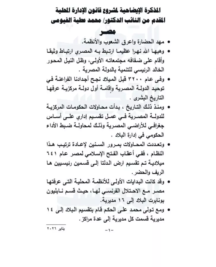 تقدم النائب محمد عطية الفيوم. عضو مجلس النواب بمشروع قانون الإدارة المحلية يتضمن مقترح تغيير اسم العاصمة الإدارية إلى “ممفيس”