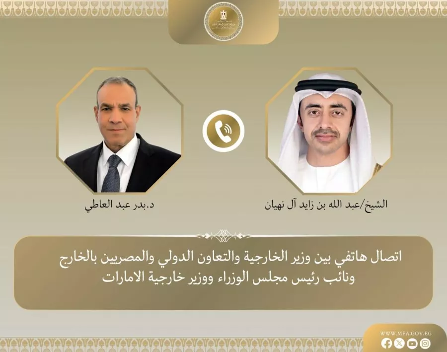جرى اتصال هاتفي بين د. بدر عبد العاطي وزير الخارجية والتعاون الدولي والمصريين بالخارج، وسمو الشيخ عبد الله بن زايد آل نهيان نائب رئيس مجلس الوزراء ووزير خارجية دولة الإمارات العربية المتحدة الشقيقة، وذلك في إطار التشاور الدوري والتنسيق المستمر بين البلدين تجاه القضايا ذات الاهتمام المشترك.