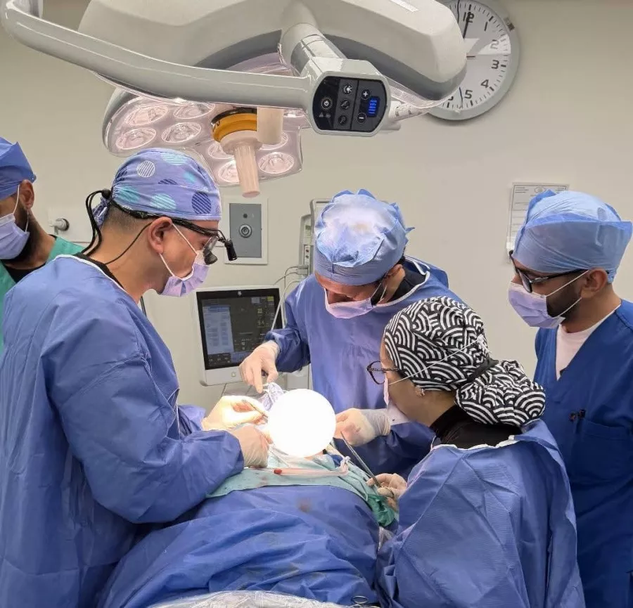 وقد أُجريت الجراحة على يد فريق طبي متخصص ضم د. هاني صبحي زقزوق ود. إبراهيم يحيى الخولاني، استشاريي جراحة الوجه والفكين، بالإضافة إلى د. محمود محمد منصور ود. أحمد جمال حافظ، أخصائيي جراحة الوجه والفكين، ود. نسمة عنان عبدالمحسن، ود. إسلام أشرف حافظ، ود. أحمد عبدالله سمرة، نوّاب جراحة الوجه والفكين. كما شارك فريق التخدير د. رضا أبوالمجد، استشاري التخدير، ود. أحمد عبدالعظيم، أخصائي التخدير، مع معاونة فريق التمريض بمشاركة أ. سناء طه.