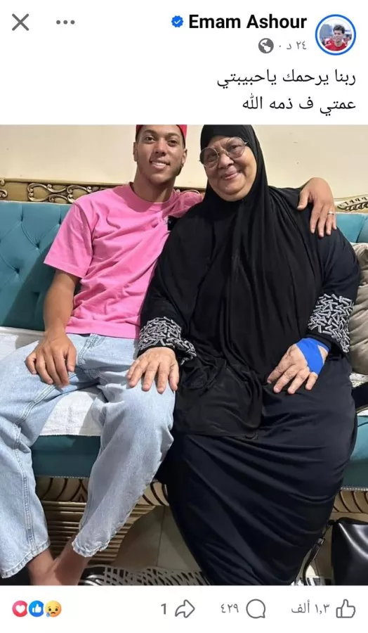 حرص إمام عاشور لاعب النادى الأهلى على نعي عمته عبر حسابه الرسمي على مواقع التواصل الاجتماعي، حيث نشر صورة تجمعهما سويًا، وأرفقها بكلمات مؤثرة قال فيها: “ربنا يرحمك يا حبيبتي.. عمتي في ذمة الله”.