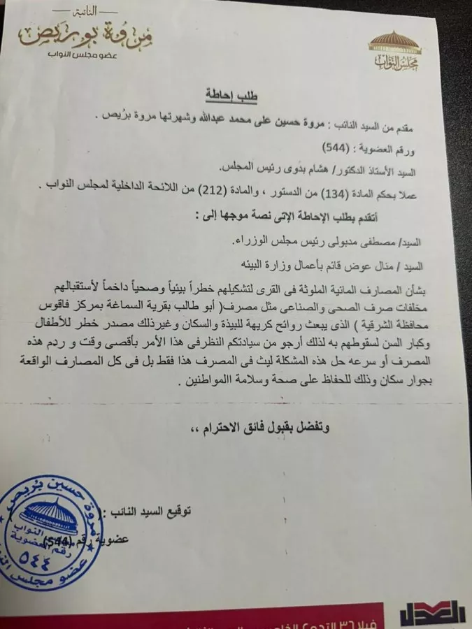 و أكدت النائبة مروة بوريص أن استمرار هذه الأوضاع لم يعد مقبولا، خاصة في ظل ما تسببه هذه المصارف من روائح كريهة وتلوث خطير، فضلا عن تحولها إلى مصدر تهديد يومى للأطفال وكبار السن، مستشهدة بمصرف “أبو طالب” بقرية السماعة بمركز فاقوس بمحافظة الشرقية، كنموذج واضح لحجم الأزمة.