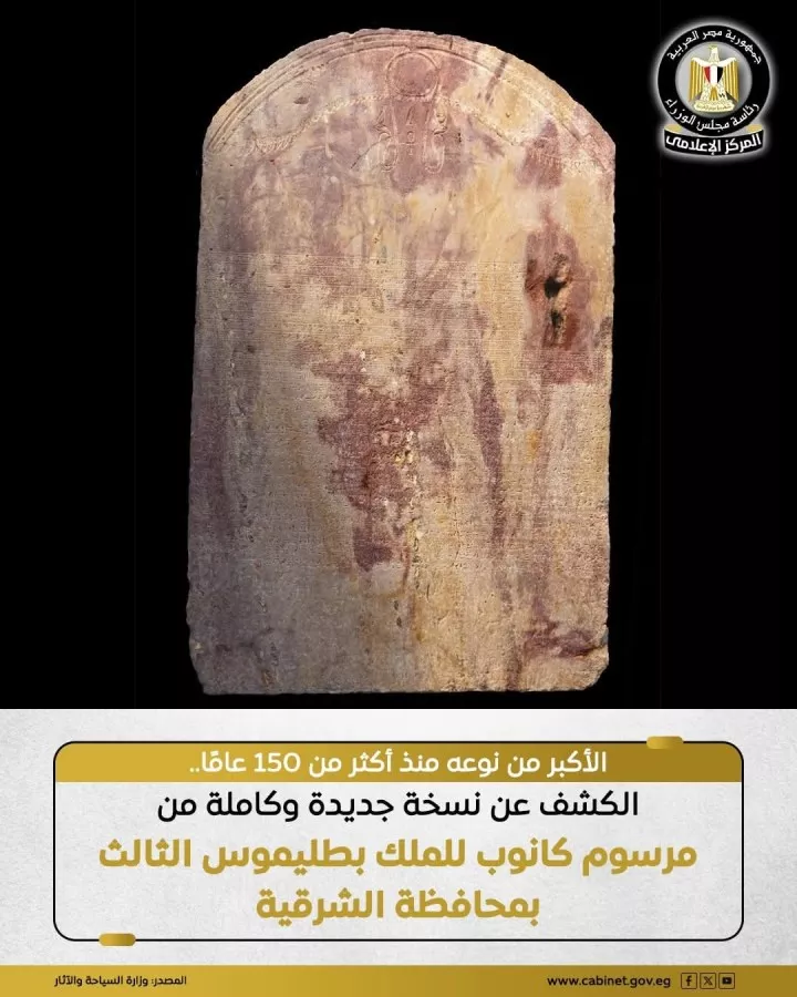 الكشف عن نسخة جديدة من مرسوم كانوب للملك بطليموس الثالث بالشرقية