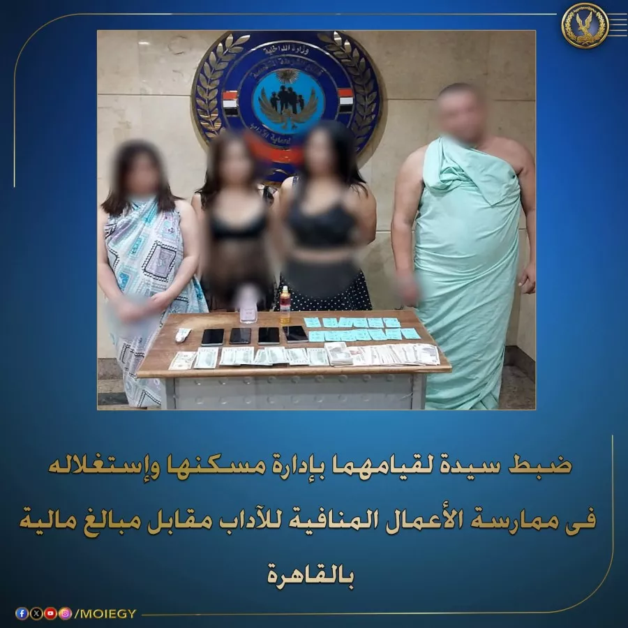 فى إطار جهود مكافحة الجرائم المنافية للآداب العامة.. فقد أكدت معلومات وتحريات الإدارة العامة لحماية الآداب بقطاع الشرطة المتخصصة قيام (إحدى السيدات “تحمل جنسية إحدى الدول- إقامة منتهية “) بإدارة مسكنها الكائن بدائرة قسم شرطة المعادى بالقاهرة، وإستغلاله فى ممارسة الأعمال المنافية للآداب لراغبى المتعة مقابل مبالغ مالية وبدون تمييز.