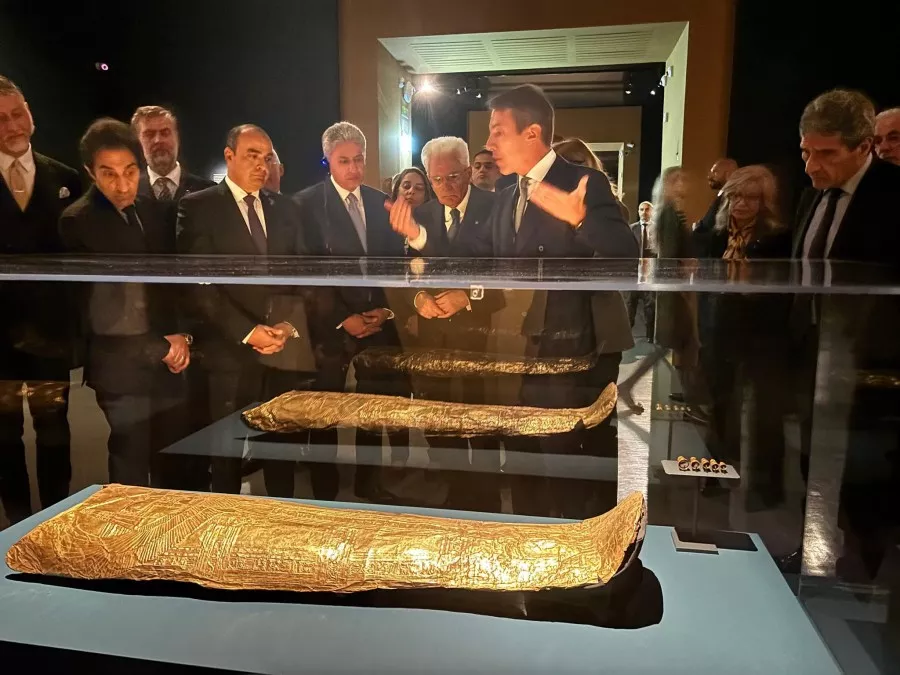 افتتح اليوم سيرجيو ماتاريلا، رئيس جمهورية إيطاليا، معرض “كنوز الفراعنة” المقام بقاعة Scuderie del Quirinale التابعة لمؤسسة الرئاسة الإيطالية في العاصمة روما، وذلك بحضور السيد شريف فتحي وزير السياحة والآثار المصري، والسيد أليسندرو جولي وزير الثقافة الإيطالي، والسفير بسام راضي سفير مصر لدى إيطاليا، والدكتور محمد إسماعيل خالد الأمين العام للمجلس الأعلى للآثار، والدكتور محمد شعبان معاون وزير السياحة والآثار للتحول الرقمي، والدكتور طارق العوضي المشرف علي المعرض