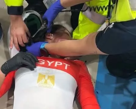 وسقطت البطلة المصرية على المضمار بشكل عنيف؛ ما أثار قلق الحضور؛ ليتم نقلها على الفور عبر سيارة الإسعاف إلى المستشفى، حيث خضعت لتدخل جراحي سريع بعد تقييم حالتها الصحية.
