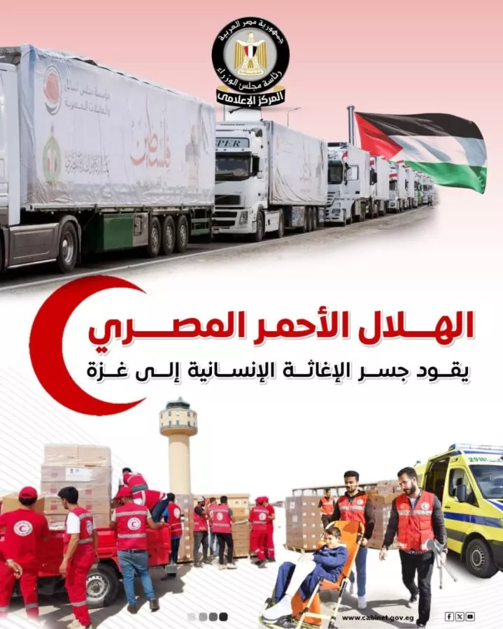 أكد المركز الإعلامي لمجلس الوزراء أنه منذ اندلاع الأزمة في قطاع غزة، يتصدر الهلال الأحمر المصري المشهد الإنساني، باعتباره ذراع الدولة في تقديم وتوجيه جهود الإغاثة والدعم للأشقاء الفلسطينيين، حيث يقود جسر المساعدات المتدفقة إلى غزة عبر قوافل وشحنات متنوعة من الغذاء والدواء والمستلزمات الأساسية.